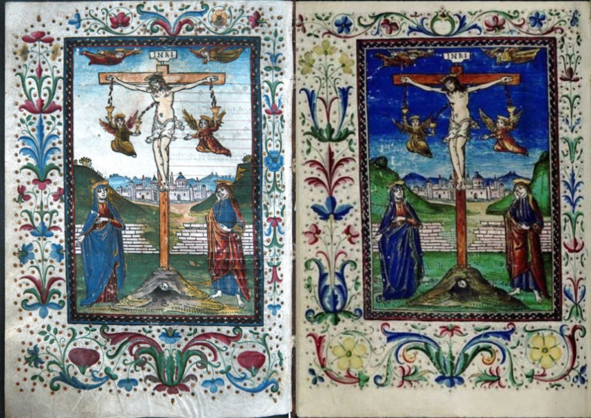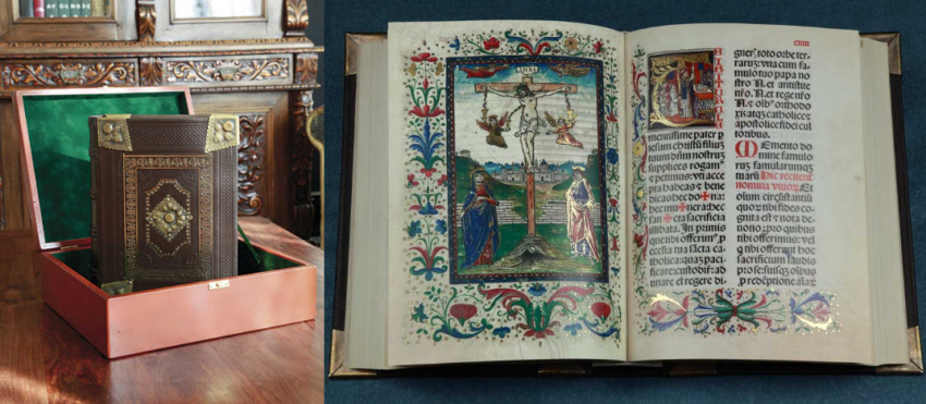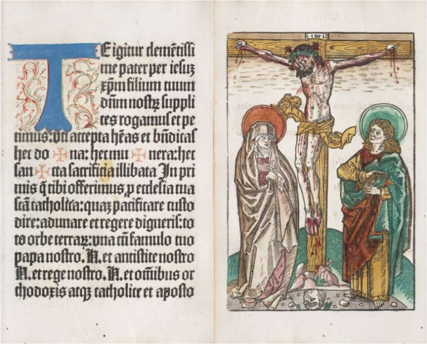 A Pécsi Misekönyv 1487-es bázeli kiadásának egy díszes lapja és a kánonkép