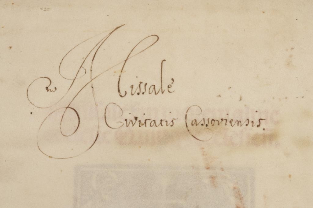 A ma Pécsett fellelhető példány története meglehetősen kalandos volt: Minden valószínűség szerint a város török által való elfoglalása, 1543 előtt több példány is megtalálható volt az egyházmegyében. Onnantól a pécsi darabok sorsa ismeretlen. A város felszabadulása után Klimo György püspök (1751–1777) szerzett tudomást történeti forrásokból a 15. század végi pécsi misekönyv kassai fellelhetőségéről. 1768. szeptember 15-én levelet írt Berecz Mihály egri kanonok, kassai plébánosnak, jelezve igényét a fontos pécsi szertartástörténeti vonatkozásokat tartalmazó kötetre. A pécsi pergamen-példány 1769 tavaszán Eszterházy Károly egri püspök (1761–1799) jóváhagyásával került vissza a városba, és onnantól az 1774-ben nyilvánossá tett pécsi püspöki könyvtár állományát gazdagította. A kassai átmeneti helyére az első szennylap bejegyzése utal: Missale Civitatis Cassoviensis, amely sokáig a kötet azonosítást is megnehezítette.