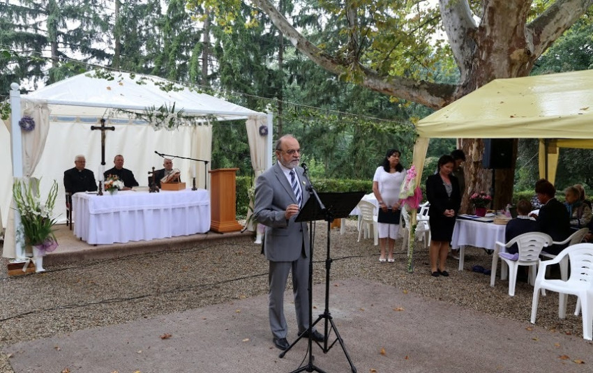 A szentmisét követően Bató András, a Római Katolikus Egyházi Szeretetszolgálat főigazgatója köszöntőjével folytatódott az ünnepi megemlékezés. Az apostoliság kegyhelyén zarándokok vagyunk – idézte Ferenc pápát. Tisztelgünk az itt élő atyák, nővérek, idős emberek előtt – mondta Bató András. Megemlékezett az otthon névadójáról, a Vác újjáalapítójaként tisztelt Migazzi Kristóf váci püspök, későbbi bécsi érsekről. Végül az ünneplés megújító erejét kívánta az egybegyűlteknek.