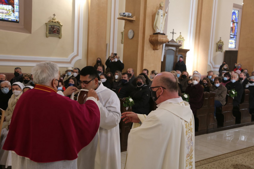 „Ma történelmet írunk, hisz legutóbb Sárváron a nagytemplomban 65 éve szenteltek két sárvári fiatalt pappá. Az egyházmegyében Sárvárról van a legtöbb működő pap, ez egy jó paptermő vidék” – köszöntötte a megyéspüspököt Wimmer Roland városi plébános a szentmise kezdetén.
