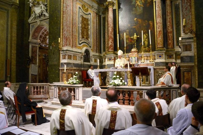 A papok, akik most tanulnak Rómában, a kulturális és lelki gazdagság mellett a megújulás légkörével is találkoznak, egy olyan lelkiségi és történelmi mozgalommal, amelyben újra felteszik a hit és a vallási gondolat alapvető kérdéseit. A nagy antropológiai változás kontextusában, amely a mostani történelmi helyzetre jellemző, együtt keressük hitünk átadásának útjait és nyelvezetét, hitünknek, amelyet Jézus Krisztustól, Mesterünkről és Urunkról kaptunk, aki a mi szolgálatunk által a mai világba is meg akar érkezni. Különleges kegyelem, ha valaki az örök városban követheti ezt a fejlődést, közel Szent Péter utódához, összekapcsolódva a római egyház egészével. Kérjük Isten áldását a Pápai Magyar Intézet szolgálatára, minden élő és elhunyt tagjára, a magyar egyházra és a magyar népre. Ámen.