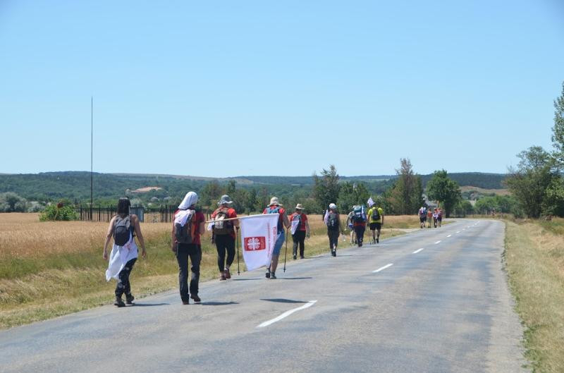 Június 30-a reggel, verőfényes napsütés Székesfehérvárott. A szállástól a templomig még nem hosszú az út. Korán van, az előző napi egyeztetés sokáig tartott, de a lelkesedés és a várakozás viszi lépteinket a templomba. Spányi Antal püspök, a Katolikus Karitász elnöke és Écsy Gábor országos igazgató fogad minket. Az útra bocsájtó szentmise homíliájában püspök atya nem ad nagy feladatot, „csak” annyit, hogy egyéni meghívásként értelmezve járjuk végig a 90 km-t, hogy újuljunk meg gondolkodásunkban, lelkületünkben és ez majd egész életünkre kihat.