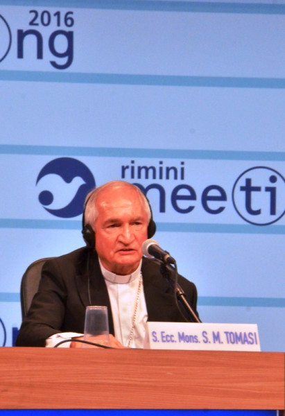 Nem számok, hanem személyek – Migránsok, a találkozás kihívása című előadásában Silvano Maria Tomasi érsek, a Szentszék állandó megfigyelője az ENSZ-nél rámutatott, nem működik jól a világunk, ha elsáncoljuk magunkat a félelem barikádjai mögé, miközben ezrek lelik halálukat a Földközi-tengerben.