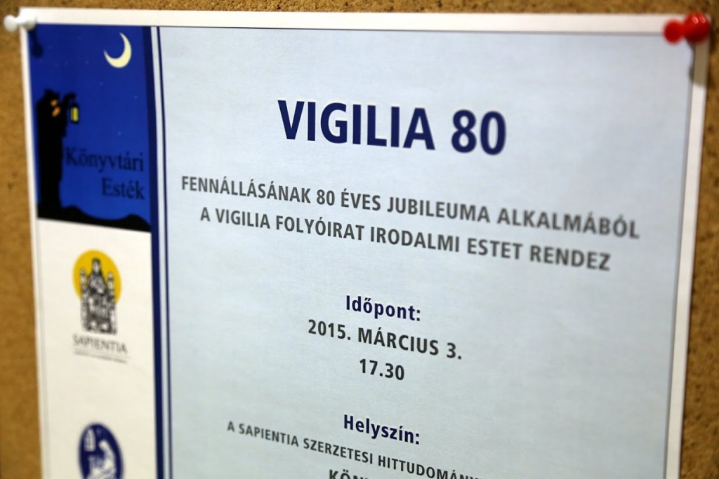A Sapientia Könyvtári esték sorozatának keretében megrendezett est kezdetén Lukács László SchP főszerkesztő köszöntötte a jelenlévőket, majd átadta a szót Bende Józsefnek, a Vigilia szerkesztőjének. Ő szólította maga mellé sorban a meghívott költőket, arra kérve őket, hogy olvassanak fel egy saját verset, valamint egy általuk választott, Vigiliához kapcsolódó alkotó művét. A felolvasások között beszélgetéseket hallhatott a könyvtárhelyiséget megtöltő közönség.