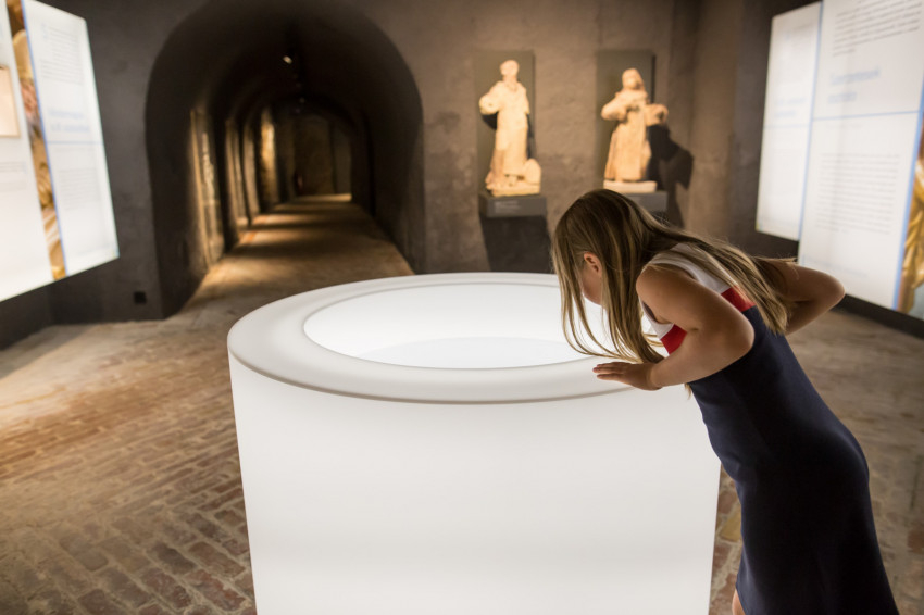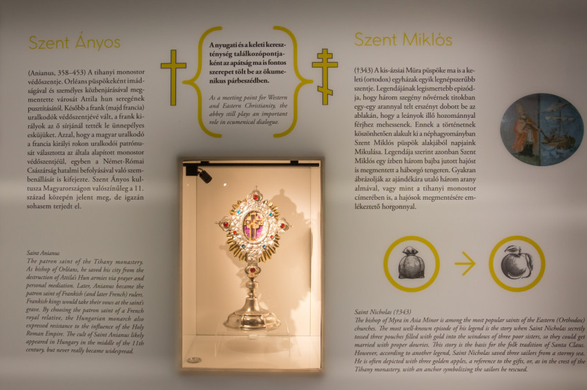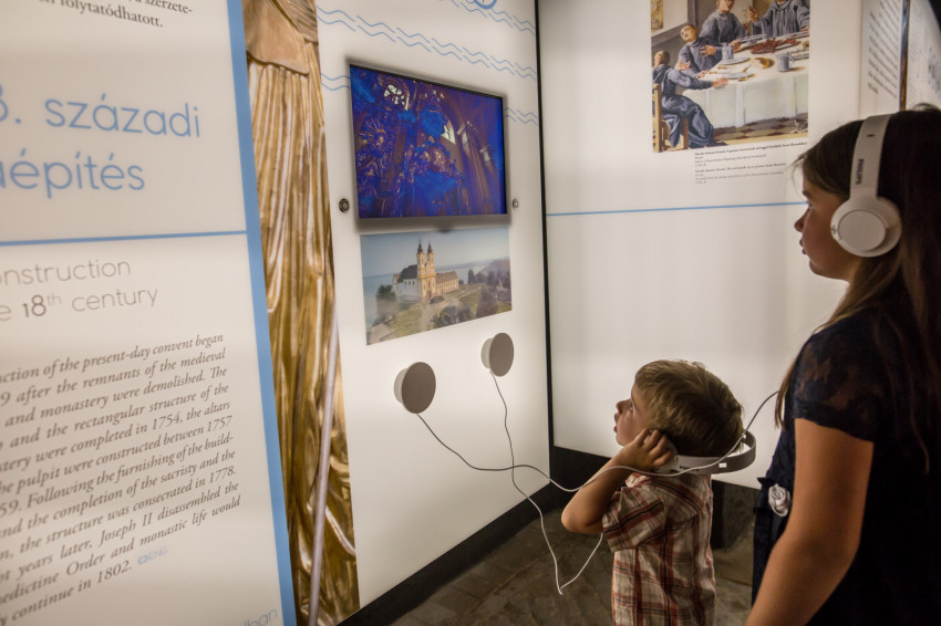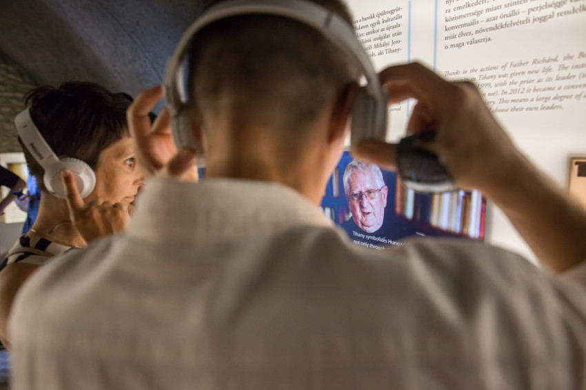 A megújult múzeum átadása és a kiállítások ünnepélyes megnyitása után a jelenlévők megtekinthették a két tárlatot. A Lélek a vizek felett – múlt és jelen találkozása a tihanyi apátságban című kiállítás bemutatja, hogyan nézett ki az apátság alapításakor Tihany, mely akkor még sziget volt. Bemutatja legősibb nyelvemlékünk, a Tihanyi alapítólevél titkait, érdekességeit. Megismerhetjük az egykor az apátság falai között élt szerzetesek életét; de megtudhatjuk például azt is, miként lett a Balaton jege alól kihúzott szerzetesből Tihany leghíresebb apátja, vagy hogy miért Tihanyban búcsúzott el országától az utolsó magyar király. Egy mai szerzetesi szobát is berendeztek a kiállítás végén, amely bepillantást enged a monostor jelenlegi lakóinak életébe.