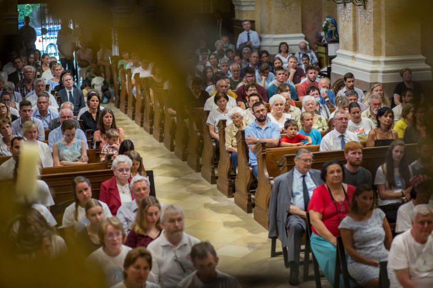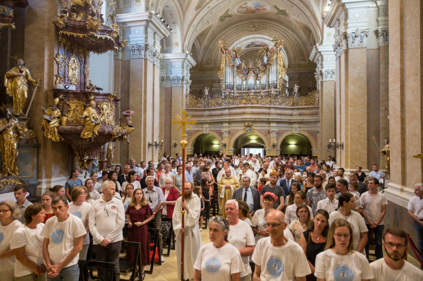 Az előesti ünnepi szentmisére jöttek hívek a környező településekről is, de megérkeztek a Győrből induló Szent Benedek-zarándoklat résztvevői is.