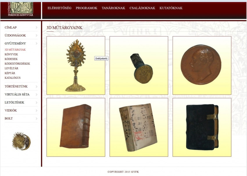 A Gyűjtemény rovatban az egyes műtárgyakról 3D-s ábrázolást is találhatunk: például az ereklyetartó fotójára rákattintva minden szögből megtekinthetjük a körbeforgó műtárgyat; illetve a bal egérgombot lenyomva tartva manuálisan tudjuk forgatni a tárgyat. Belelapozhatunk a könyvekbe, kódexekbe, a levéltári iratokba: historia domusokba, oklevelekbe, végrendeletekbe; megcsodálhatjuk a Képtár metszeteit és archív fotóit.