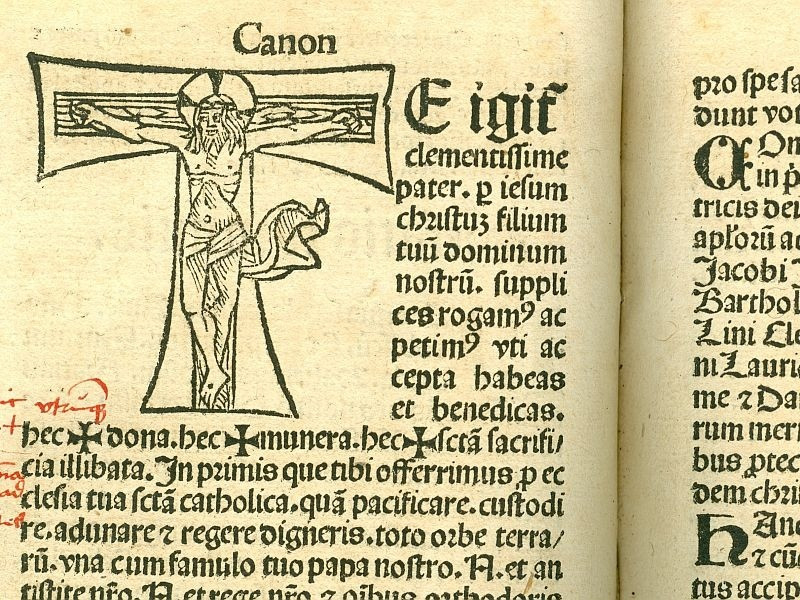 Az Újdonságok rovatban a honlap indulásának pillanatában egy 515 esztendős, kisméretű úti misekönyvet mutat be a könyvtár, amely Heinrich Quentell kölni nyomdájában készült. Az illusztráció egy T-iniciálé, amely a kereszten függő Krisztust ábrázolja – a latin nyelvű eucharisztikus imádság: Te igitur clementissime Pater („Könyörögve kérünk tehát, jóságos Atyánk…”) kezdődik ekképpen az 1500-ban nyomtatott kis huszonnyolc lapos Missale itinerantiumban, melyből mindössze hat-hét ismert példány maradt fenn Európában.