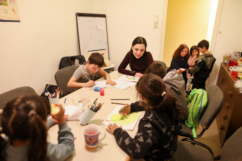 A családoknak nincsenek terveik; a mélyszegénységekben élőknek az a jövő, hogy ma legyen mit enni. Négy apuka már korábban is Magyarországon dolgozott, és remélhetőleg az anyukáknak is sikerül munkába állniuk. Irma, aki a foglalkozások után sógornőjével együtt gyorsan és szépen kitakarítja az épületet, el is mondja nekünk, mennyire szeretne dolgozni. Őt a Magyarországon dolgozó férje kérte, jöjjenek át a gyerekekkel, ne maradjanak a háborús országban, ahol ijesztően szólnak a szirénák. Három kisgyerekével sikerült is átjönnie. Egy kis táskát tudott csak hozni, az egyik gyerek a karjában volt, a másik a kezét fogta út közben, a nagy tolongásban.