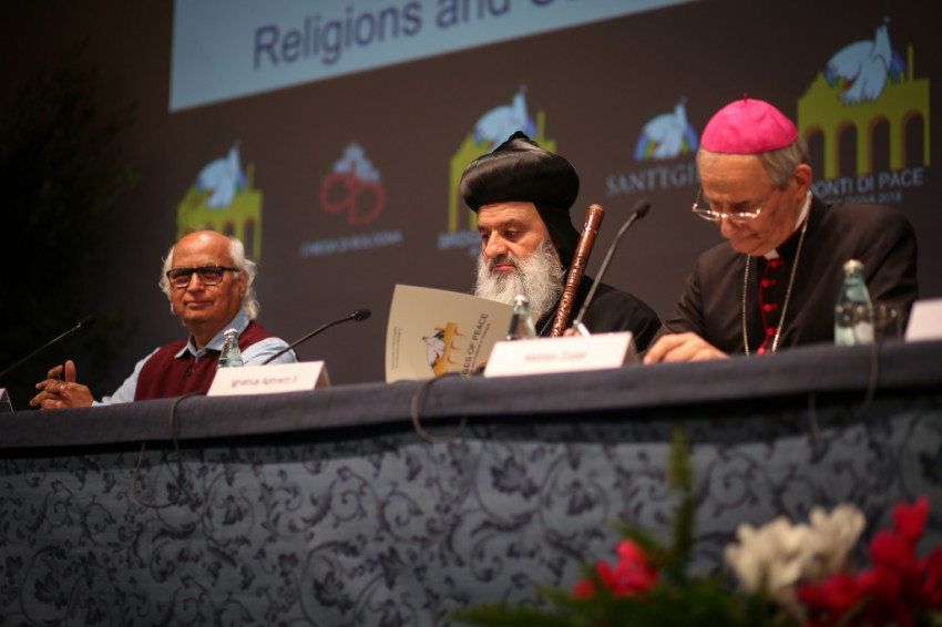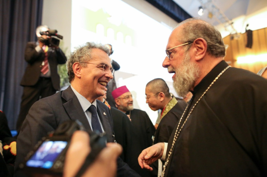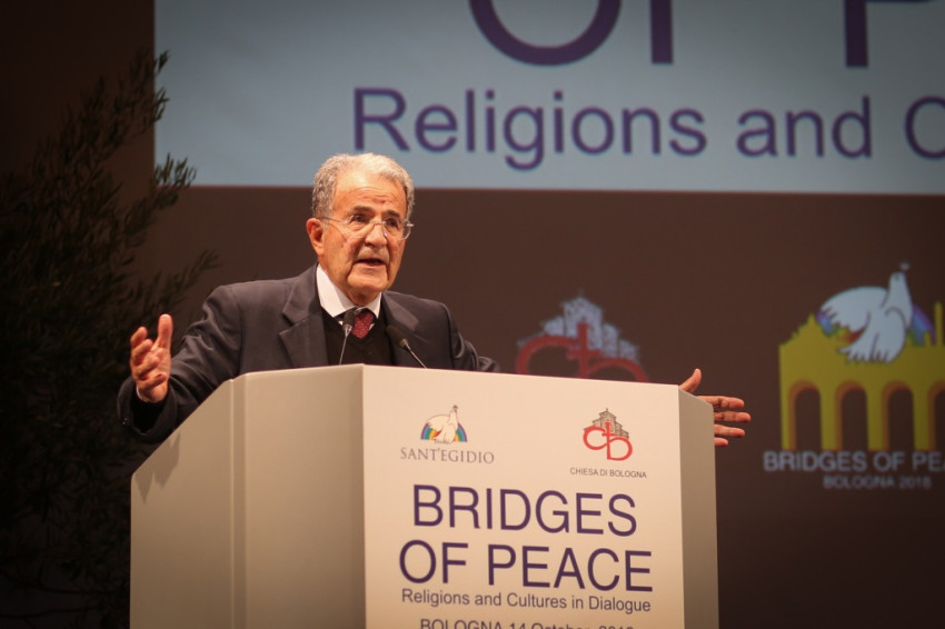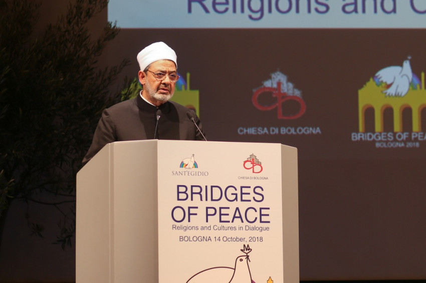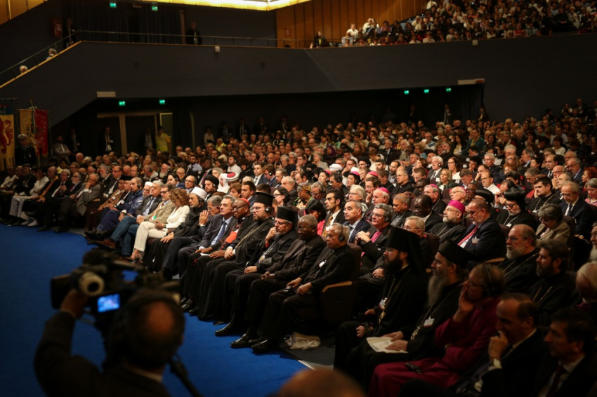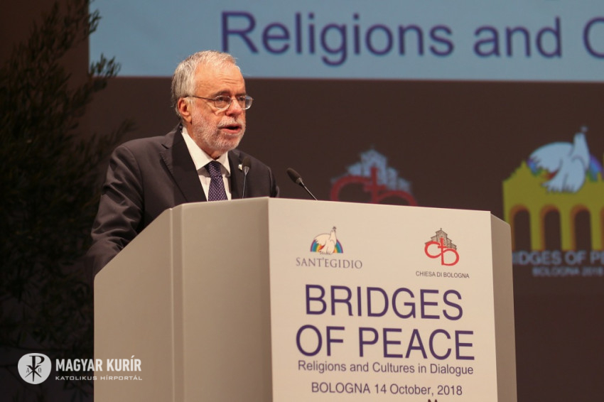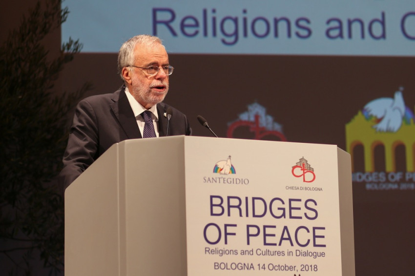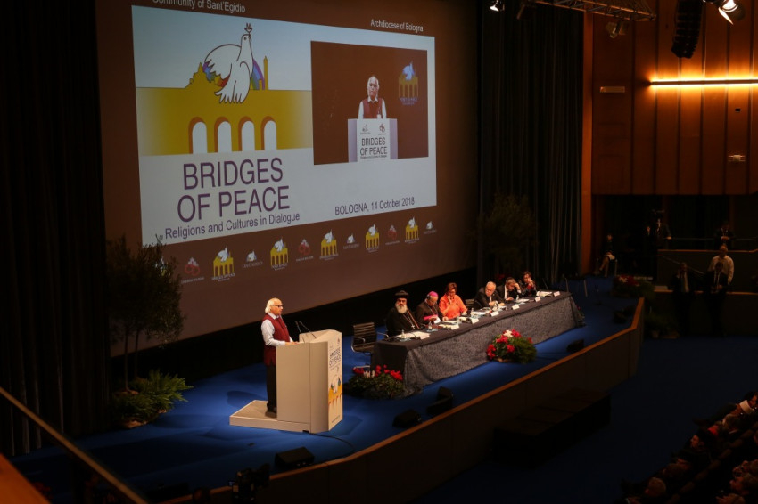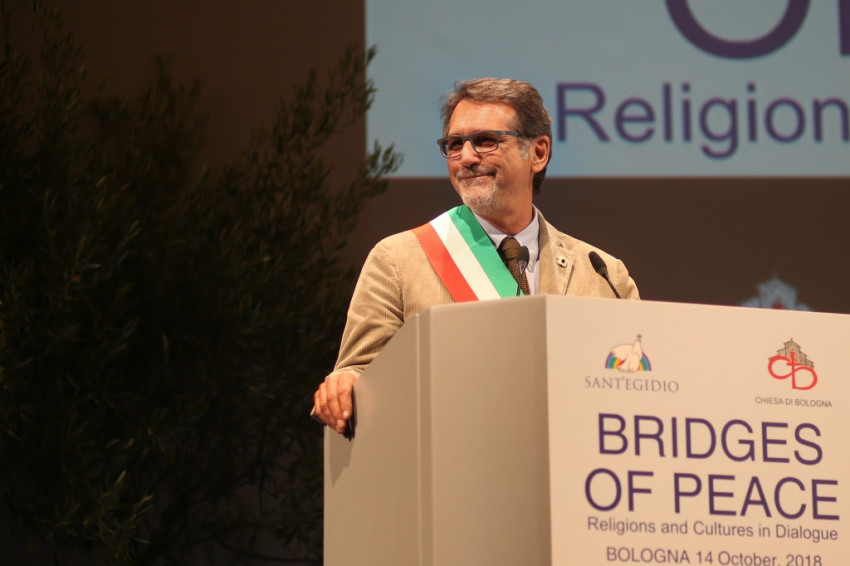 Andrea Riccardi, a Sant’Egidio közösség alapítója emlékeztetett arra, hogy a bolognai találkozó azt a párbeszédet folytatja, amely megszakítás nélkül zajlik, amióta II. János Pál 1986-ban Assisiben, a hidegháború idején elkezdte: különböző helyszíneken folytatták, átélt nehéz, háborús helyzeteket, és békét teremtett olyan helyeken, ahol ezt nem remélték. Elmondta, hogy ennek a béketeremtő tevékenységnek sok résztvevője jelen van a megnyitóünnepségen, és megemlékezett Amba Epifániosz kopt püspök barátjukról, akit idén kolostorában meggyilkoltak. Felhívta a figyelmet arra, hogy a „globalizáció eufóriája” megtört, nem társult hozzá a spirituális egység keresése a párbeszéd által. Nem elég, hogy a globalizált világ nem hozott békét, ráadásul olyan szörnyű háborúkat teremtett, mint a szíriai, amely 2011 óta tart, és legitimitást szerzett magának a vallás nevében vívott háború. Ahmad et-Tajjeb, a kairói al-Azhar mecset és egyetem főimámja hangsúlyozta, hogy a vallások ártatlanok abban a vérontásban, amelyet a nevükben elkövetnek: a terrorizmust nem egy hívő nép hozza létre, hanem a fegyverkereskedelem.