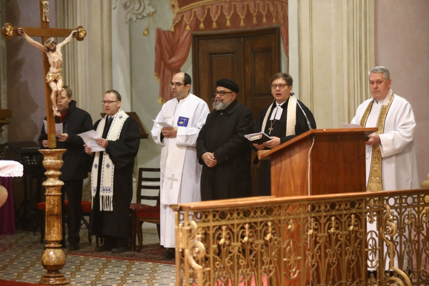 Az ökumenikus alkalom a jelen lévő többi felekezet vezetőjének imádságával folytatódott. Fabiny Tamás evangélikus püspök az Úr békéjéért, az emberek egymás felé való közeledéséért, az irgalmatlan világban az irgalomért könyörgött és az Úr segítségét kérte, hogy ne csak haszonélvezői, hanem munkálói is legyünk a békének.