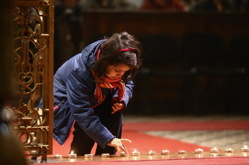Az egyházvezetők imádságait követően a hívek imádkoztak a háborúban szenvedő országokért, a jelen lévő kisgyerekek minden ország neve után mécsest gyújtottak az oltár előtt.