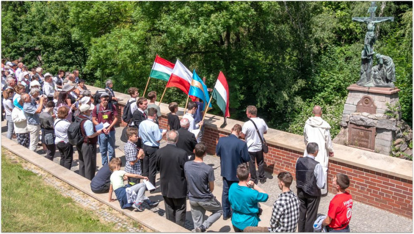 A béke jegyében zajló zarándoknap keresztútjárással folytatódott a częstochowai erőd falain haladva, az erődöt körülvevő zöld területen felállított művészi stációszobrokkal egy magasságban meg-megállva. A keresztúton a zarándoklat papi lelkivezetői felváltva mondtak elmélkedéseket.