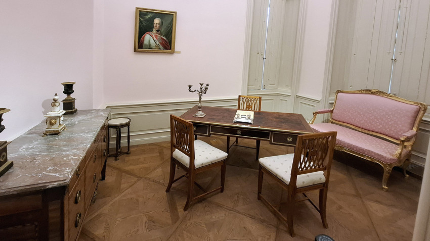 A kastélyban sokáig büszkén őrizték a kényszerű császári itt-tartózkodás emlékeit. Fenntartották a békeokmány aláírásának termét, a toronyszobát, és megőrizték annak bútorait, egykori tárgyait is, például a tintatartót, benne a tintával. Sajnos ma már csak az I. Ferencet ábrázoló festmény képviseli a korábbi békekabinet ereklyeként őrzött berendezését.
