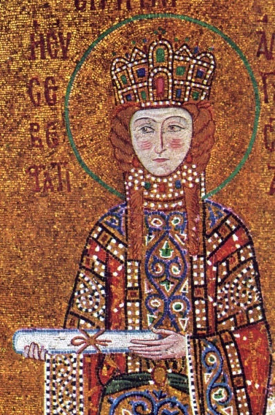 Az Hagia Sophia egy aranymozaikja Eiréné császárnét ábrázolja férje, II. Komnénosz János császár és fia, Alexiosz trónörökös között, amint bőkezű adományt nyújtanak át az Isteni Bölcsességnek: a Szűz Mária ölében ülő Jézusnak. Eiréné császárné a „mi Piroskánk”: Szent László magyar király lánya, akiből a Bizánci Birodalom legtiszteltebb császárnéja lett. Kevesen tudják azonban, milyen mély volt Mária-tisztelete, és milyen csodálatos templom-, kolostor- és kórházkomplexumot építtetett, amely ma is áll.