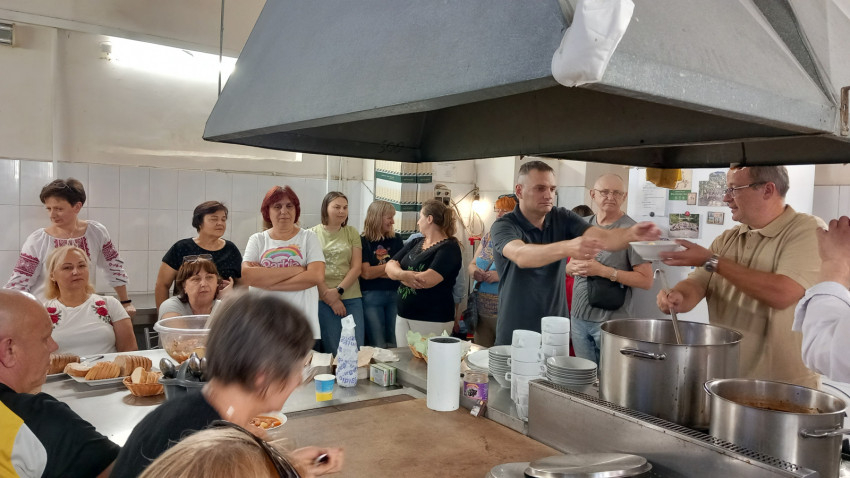 Szombaton – ami ünnepnap, a függetlenség napja volt Ukrajnában, ezért vannak sokan ünneplőben, népviseletben a fotókon – nekik főzünk gulyást nagy kondérban, miközben ők az irodákban fogadják a rászorulókat. A közösség minden héten háromszáz menekültnek ad segélyt, a regisztráció nyitott, bárki jelentkezhet. Aznap nem menekültek érkeznek, hanem nevelőszülős családok. Idővel sok menekült már berendezkedett, munkát talált, a közösség pedig igyekszik kiterjeszteni a segítséget a városlakókra is. Egyre nagyobb a szegénység, és mivel egymillió lakosú városról van szó, az önkormányzatot kérték, hogy jelöljék ki a leginkább rászorulókat, így kerültek a látóterükbe ezek a családok. Különösen nehéz helyzetben vannak a családotthonok, esetükben a saját gyerekek mellett nyolc-tíz nevelt gyereket kellett kimenekíteniük a keleti régiókból. Egy nevelőanya elmeséli, hogy otthon, Mikolajivban nagy gazdaságuk volt, mindent megtermeltek maguknak, itt pedig egy kis lakásban élnek, miközben befogadtak két újabb gyermeket is egy kényszerűségből feloszlatott zaporizzsjai intézetből.