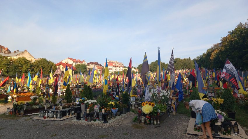 A katonai temető látványa olyan megrendítő, hogy szinte leírhatatlan: közel félszáz sír, friss virágokkal, zászlókkal, a fronton elesett férfiak arcképeivel. Katonai parcella, de ezek a fiúk, férfiak úgy néznek ránk a fotókról, mint a testvéreink, szüleink, gyerekeink... Közülünk valók, akik a hazájuk védelmében harcba szálltak.
