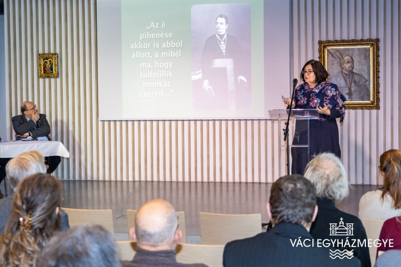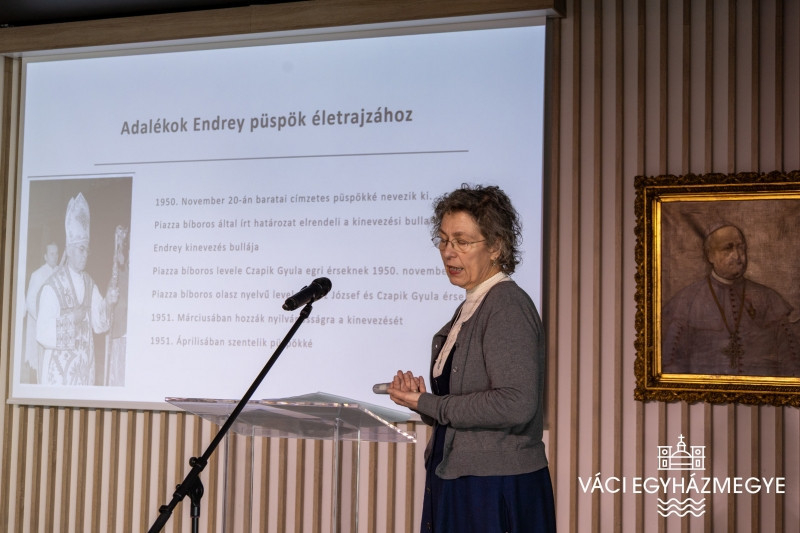 A szentszéki jóváhagyással az Esztergomi Főegyházmegye élére állított Endrey Mihály püspök életútját, majd az állami hatóságok által kikényszerített 1958-as lemondását Lieber Katalin egyházmegyei bíró ismertette részletesen előadásában. A könyvtár 20. századi kéziratainak rendezése során kerültek elő a főpásztor kéziratai, amelyek számos, életútjához kapcsolódó kérdésre választ adtak és adhatnak még a továbbiakban.