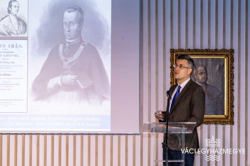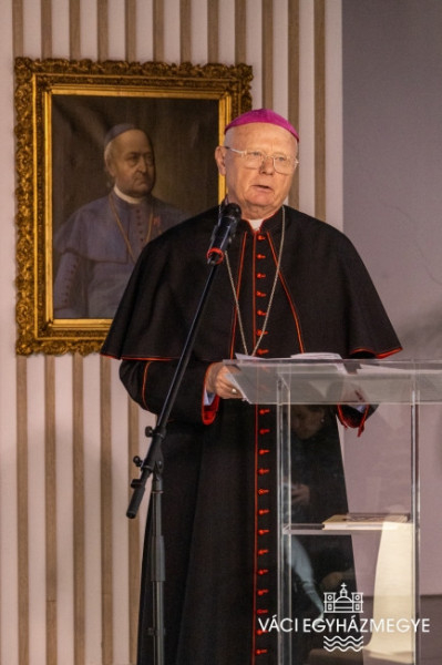 Vác 950 éves történetének jelentős mozzanata az egyházmegyei könyvtár 150 évvel ezelőtti életre hívása – hangsúlyozta Marton Zsolt váci megyéspüspök. – A könyvtárban az embert megérinti a könyvek illata; könyvtár az a hely, ahol olvasni és tanulni kell – fogalmazott a főpásztor. Az olvasás fontosságát Ferenc pápa is kiemelte Az irodalom szerepéről a képzésben című levelében, amelyből egy részletet idézett a püspök: „Sok tudós állítja, hogy az olvasás szokása számos szempontból pozitív hatással van az ember életére. Segít bővíteni a szókincsünket, s ezáltal fejleszti értelmünk különféle aspektusait. Emellett serkenti a képzelőerőt és a kreativitást. Lehetővé teszi, hogy megtanuljuk választékosabban kifejezni magunkat. Emellett javítja a koncentrációs képességünket, csökkenti a kognitív hanyatlás szintjét, csillapítja a stresszt és a szorongást.” Kívánom, hogy a visszatekintés a könyvtár történetére tartsa ébren a könyvek iránti szeretetünket, gyarapítsa szellemi kincseinket, egyházmegyénket, és ez hasson városunkra, hazánkra, nemzetünkre is – zárta megnyitó beszédét Marton Zsolt püspök.
