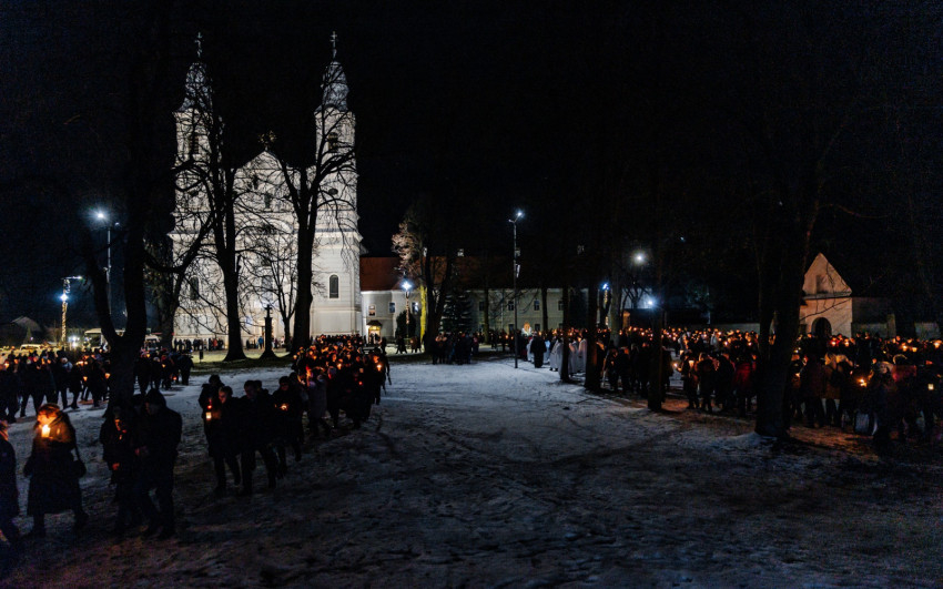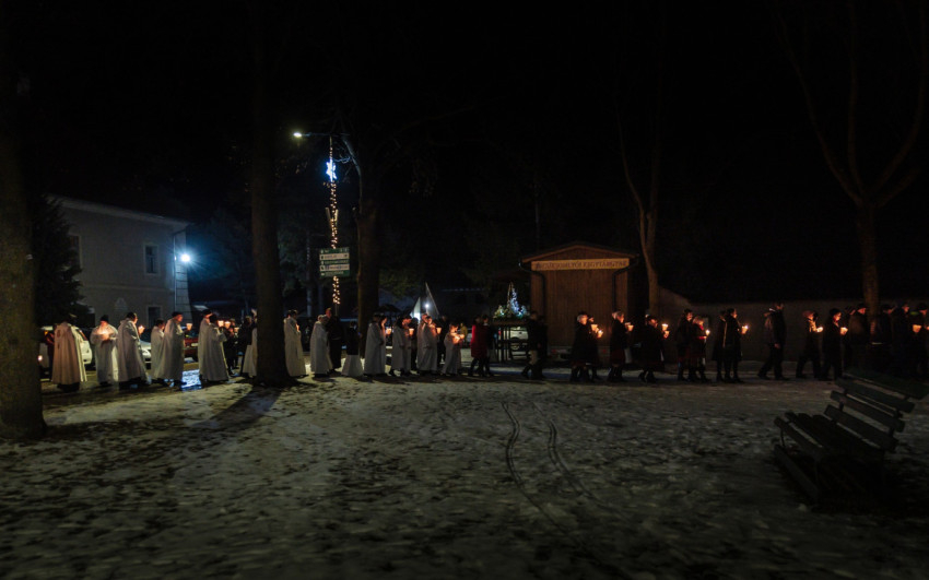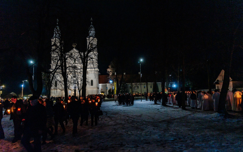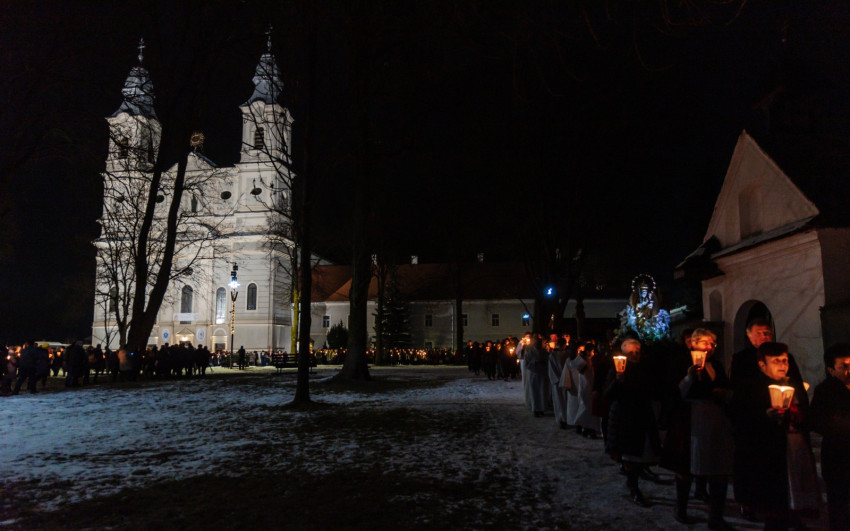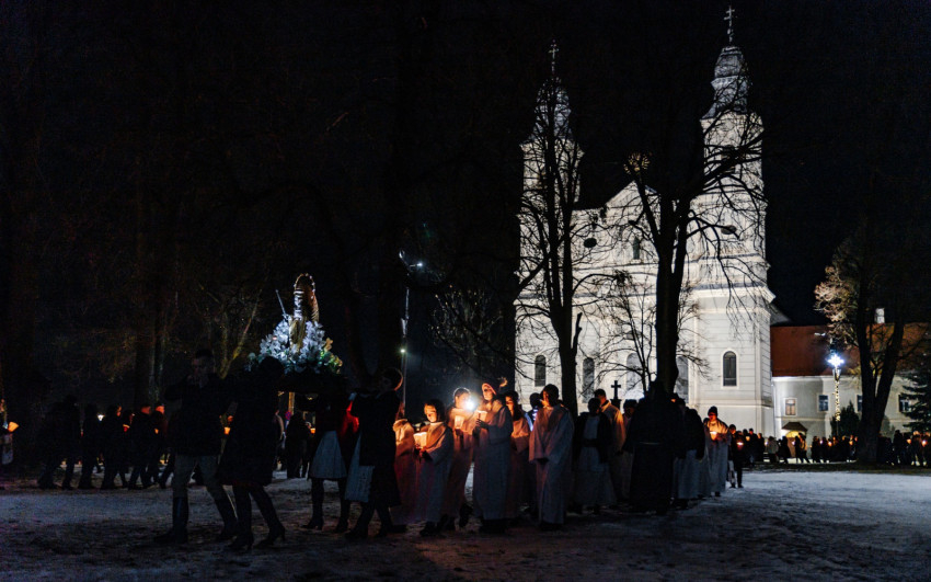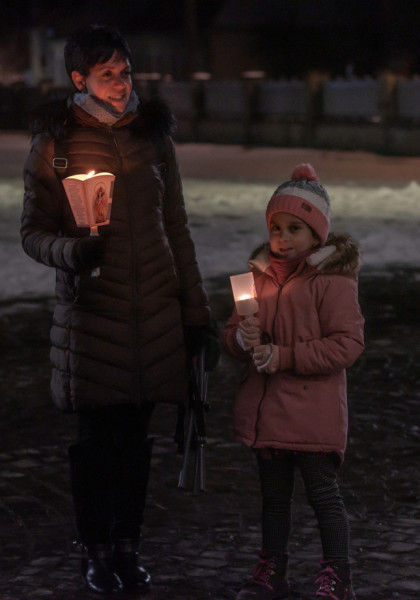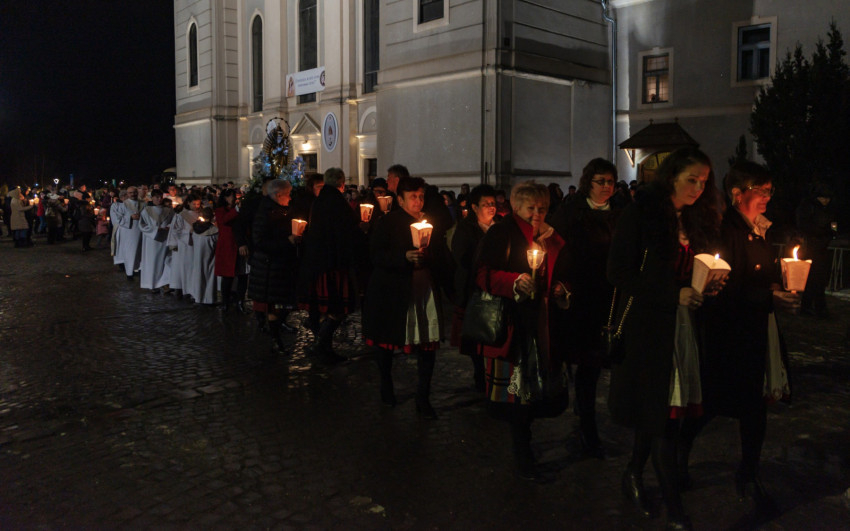 A gyertyás körmenetben a szentegyházi Szent András-plébánia tagjai vitték a Szűzanya kegyszobrának másolatát.
