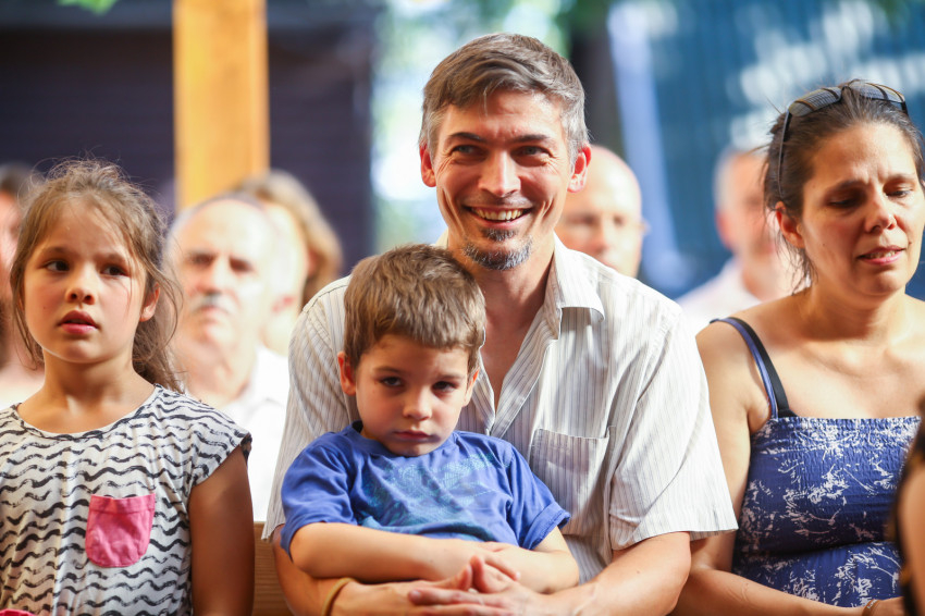 Így kezdődött az egyhetes építő és szórakoztató együttlét Pálkövén. Idén harminc házaspár és több mint hatvan gyerek nyaral. Többségük óvodás és alsótagozatos, őket fogják össze korcsoportokra bontva a kamaszok.