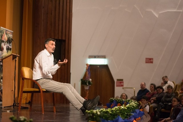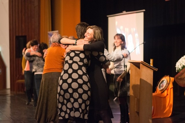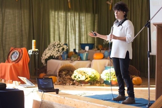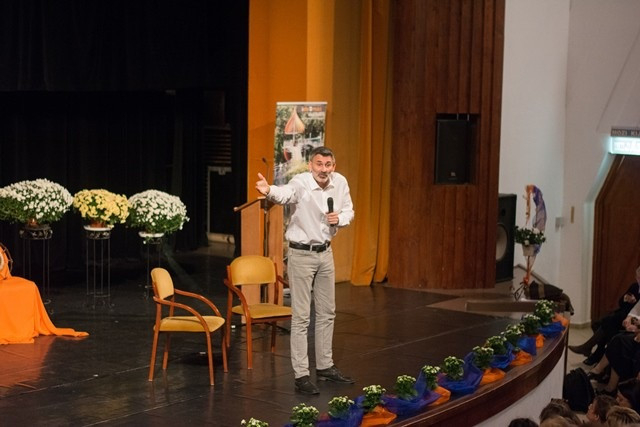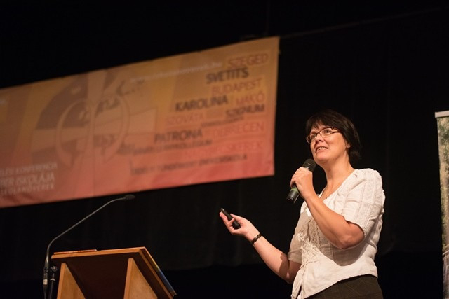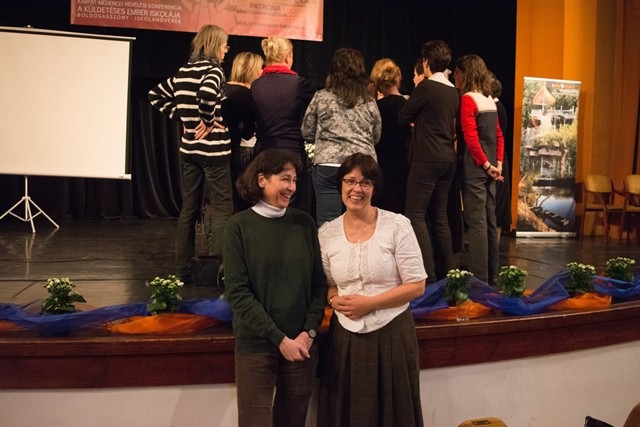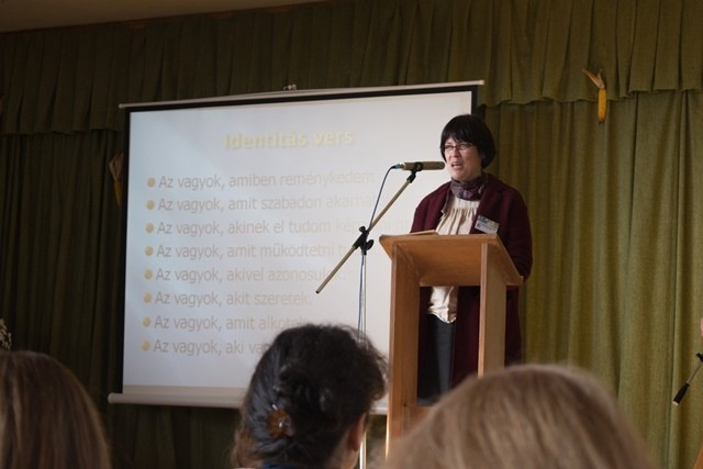 Később a makói iskola tornatermében Hári M. Ildikó nővér humoros, játékosan megmozgató, reflexióra hívó bevezetőjével a résztvevők felvették a kapcsolatot egymással. Lobmayer M. Judit tartományfőnöknő és Tornay M. Petra nővér előadásával a résztvevők áttekintették a Boldogasszony Iskolanővérek által fenntartott iskolák munkatársképzésének irányvonalait, eddigi állomásait. Ezt követően Gyarmathy Éva klinikai szakpszichológus A belső hajtóerő – belülről vezérelt ember címmel az eriksoni személyiségfejlődési modellen alapuló előadást tartott.