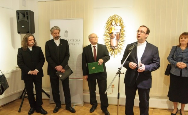 A tárlatmegnyitón a kiállító művészek képviseletében jelen volt Molnár János festőművész, grafikusművész, akinek Szűz Mária a gyermek Jézussal című festménye látható a válogatásban. A kiállításon többek között megtalálható B. Raunio Maria festőművész, Cseh Tamás zeneszerző, előadóművész, Jankovics Marcell grafikus, filmrendező, Makovecz Imre építész, Melocco Miklós szobrászművész, Móser Zoltán fotóművész és Petrás Mária keramikusművész alkotása.