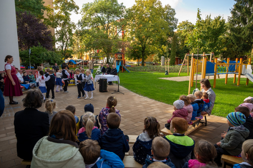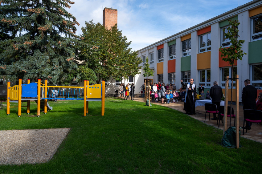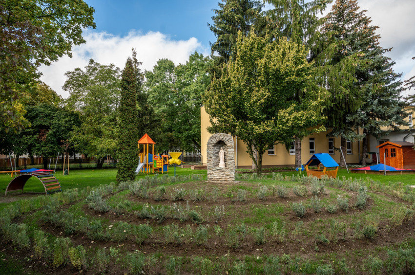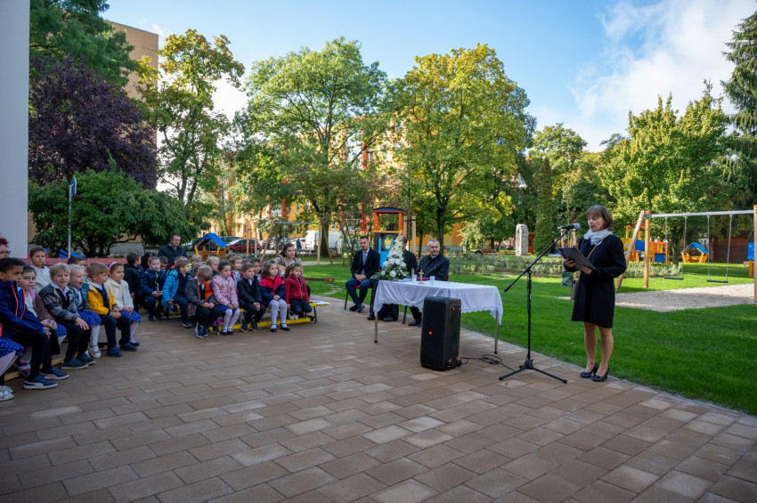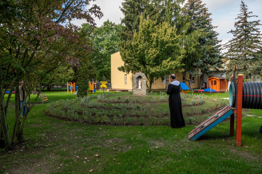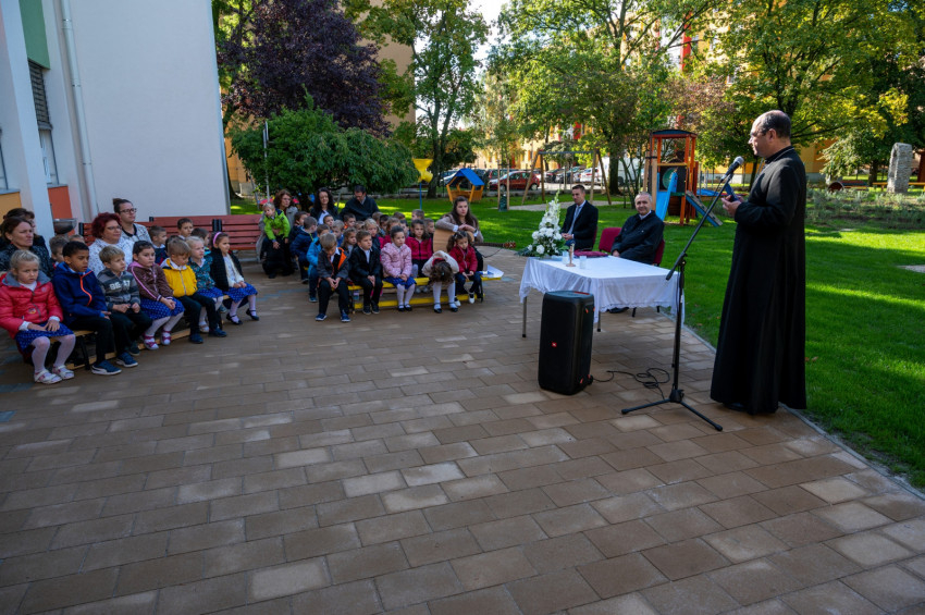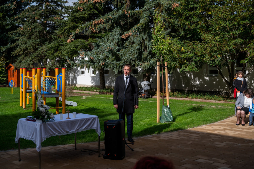 A szépen parkosított udvart Székely János megyéspüspök áldotta meg szeptember 28-án.