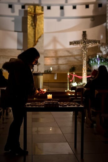 A szentségimádás közben öt papnál gyónhattak a fiatalok, a meggyóntak pedig egy-egy égő mécsest helyeztek el a kereszt lábánál.