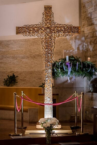 A missziós kereszt fogadásakor Fábry Kornél, a NEK főtitkára, aki diákkorában a lelkészség aktív ministránsa volt, szólt az esemény jelentőségéről, majd Pákozdi István egyetemi lelkész mutatta be Ozsvári Csaba ötvösművész, a Schönstatt-mozgalom egykori tagja alkotását. A kereszt nemcsak kiemelkedő képzőművészeti alkotás, de többszörös ereklyetartó is: a Szent Kereszt-ereklyén kívül még 27 szentnek és boldognak az ereklyéjét is magában foglalja, olyan szentekét, akik a magyar kereszténység építői voltak a múltban, illetve korunkban.
