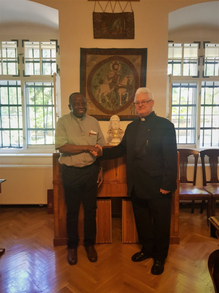 Látogatása céljáról Pierre Cibambo azt mondta: először is a személyes találkozást fontosnak tartotta, mert szerette volna a főpásztort megerősíteni abban, hogy püspök-elnöki munkája nagyon fontos és értékes. A Karitász „atyjaként” jelenléte nélkülözhetetlen, hiszen nemcsak referál a püspöki konferenciának a segélyszervezet munkájáról, hanem szervezi, felügyeli is ezt a szolgálatot. Nyilván nehéz és szerteágazó feladatokkal szembesül, hiszen 800 plébániai karitászcsoport van ebben az országban, ebből 94 a székesfehérvári egyházmegyében. Ez is mutatja a karitászpüspök fontos feladatát, hogy példát mutasson a karitatív szolgálatban, hogy a papok megértsék, az evangelizáció, az igehirdetés, a szentségekhez kiszolgáltatása mellett nem lehet hiteles egyházi életet élni az irgalmasság cselekedetei, vagyis a diakónia nélkül. Ez a három dimenzió elválaszthatatlan egymástól.