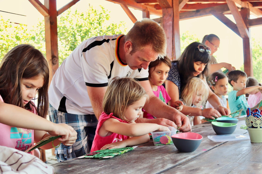 Lepedus István családreferens házastársi kapcsolatot erősítő gyakorlatokat, családi játékokat vezetett. Szejke Judit növényfestésműhelyt tartott az édesanyáknak, lányoknak. Keresztes Zoltán pedig a fafaragás rejtelmeibe vezette be a jelen lévő apákat, fiúkat.