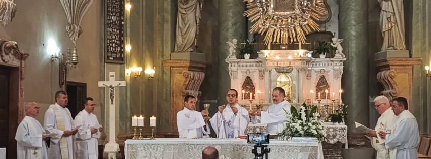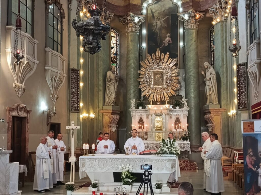 Ennek lehettünk mi, magyar és román anyanyelvű családok tanúi, akik szeptember 16-án reggel a plébánosok kíséretében elzarándokoltunk a máriaradnai kegytemplomhoz. A templom főoltárának jobb oldalán egy nagy méretű Szent Család-kép köszöntötte az érkező családokat. A radnai kegytemplomban 10 órától szentmisén vettünk részt, amelynek főcelebránsa Hiticaș Macedon resicabányai plébános, családpasztorációs referens volt.