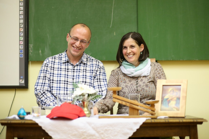 Éppen erre a programra volt a leginkább kíváncsi Kabay Zoltán és Kabay-Melega Anikó, akik három fiukkal Szombathelyről érkeztek az egyházmegyei találkozóra. A nyáron részt vettek egy négynapos családtáborban, az ott megtapasztalt lelki megújulás indította őket arra, hogy erre a találkozóra is eljöjjenek. Bár a három kisfiú mellett mindennap egy túlélés, mondják, esténként mindig igyekeznek időt fordítani a beszélgetésre, még ha csak fél 10 után is sikerül. Úgy látják, A házasság művészete című munkafüzetnek ők is nagy hasznát vehetik, és a családközösségük részére is jó témát szolgáltathat majd. Szintén hasznosnak találják a jegyesoktatásban, amibe a terveik szerint házaspár kísérőkként szeretnének minél inkább bekapcsolódni.