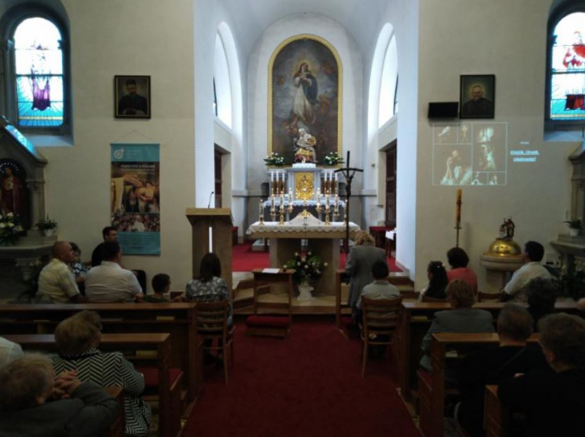 A zarándoklat szentségimádással kezdődött – zoboraljai családok imádkoztak az Oltáriszentség előtt: édesanyák, édesapák és gyermekeik az adoráció engesztelő részében bocsánatot kértek az Úrtól a bűnökért és mulasztásokért.