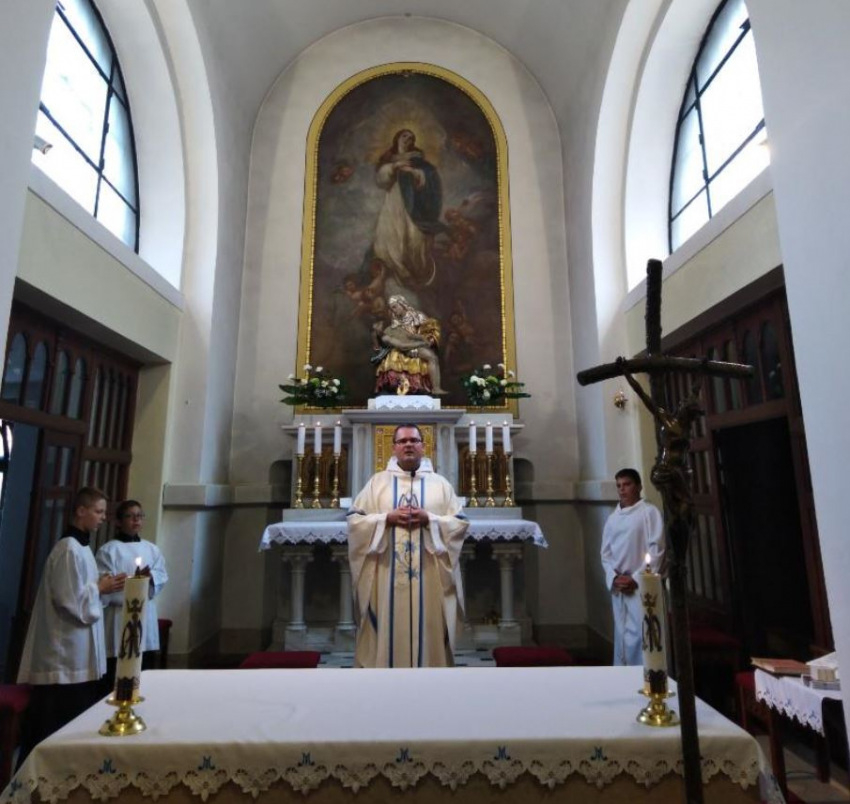 A szeptemberi zarándoklat imaszándékához kapcsolódva homíliájában az Eucharisztiáról és a családokról beszélt a plébános. Az Oltáriszentség az Úr legnagyobb ajándéka – mondta –, hiszen általa szívünkben hordozhatjuk az Istent. Ugyanilyen ajándék a család is; ezért teremtette Isten férfinak és nőnek az embert. S látta, hogy ez nagyon jó, hiszen az ember úgy válik teljessé, hogy van családja, van társa, akit szerethet, és aki viszontszereti őt, és kettejük szeretete gyümölcsöző, hiszen e szeretetből gyermekek születnek.