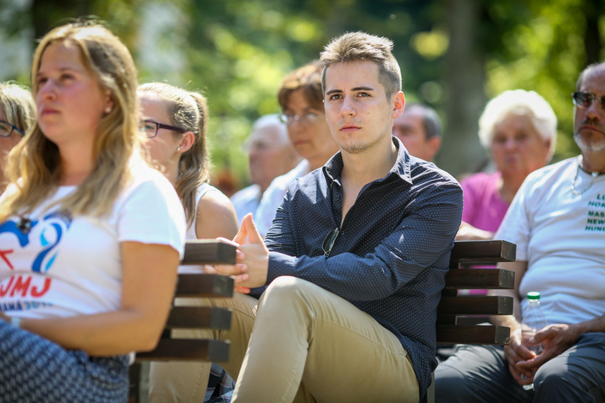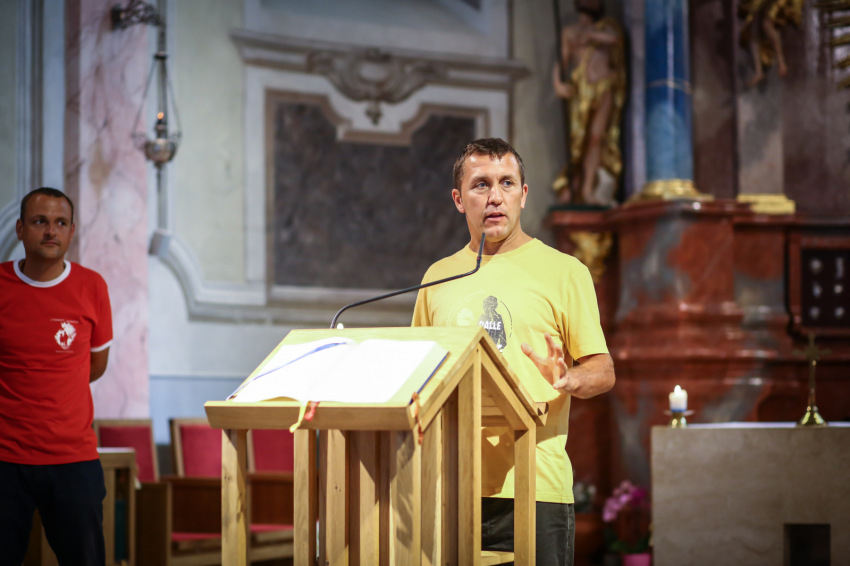 Orosz Lóránt kegyhelyigazgató Mihályként és Tamásként mutatja be a két – cseh és olasz – fiatalembert, akik Pozsony mellől, az ottani Cenacolo Közösségből érkeztek. „Néhány éve léptem be a közösségbe – kezdi Mihály –; azért, mert boldogtalan voltam. Tizenöt éves koromban a szerencsejátékok rabja lettem, és ez tizenhárom éven át elkísért. A szüleimtől azt tanultam, hogy a család és az anyagiak a legfontosabbak. Megnősültem, gyermekeim lettek, de aztán mindent elvesztettem, mert csak a saját élvezetemet kerestem. Huszonnyolc évesen nagyjából a között választhattam, hogy vagy az utcára kerülök, vagy a közösség tagja leszek. A családtagjaim bizalmát eljátszottam, és az önmagamban való bizalmam is egészen megrendült, ezért öngyilkosságot is megkíséreltem.
