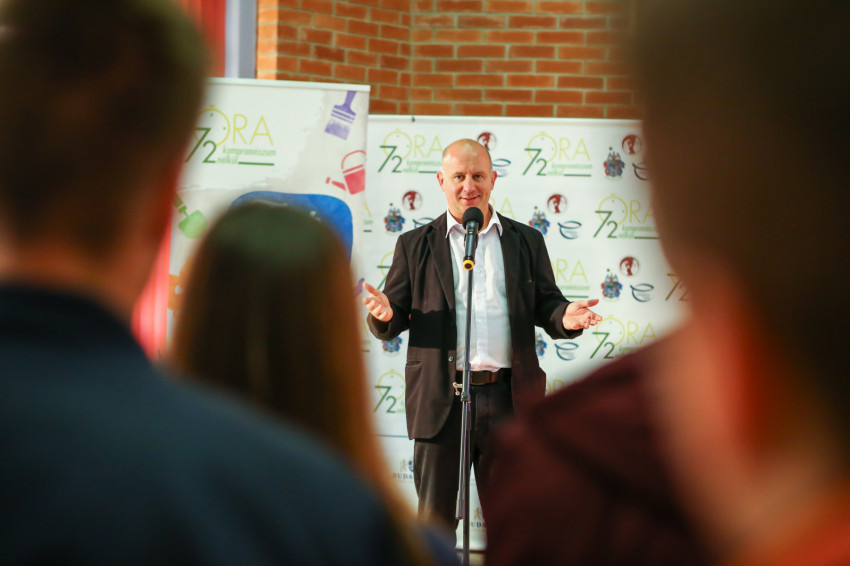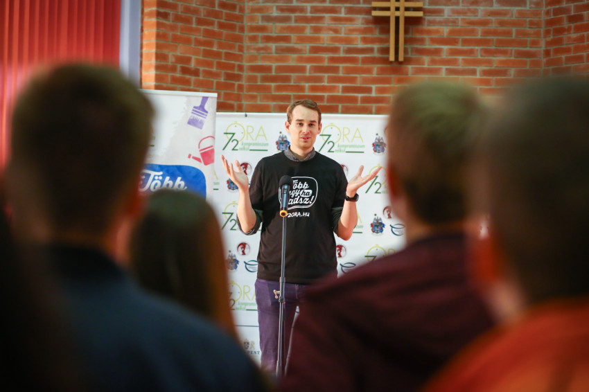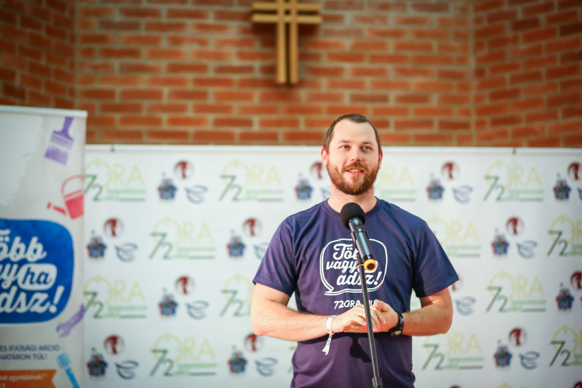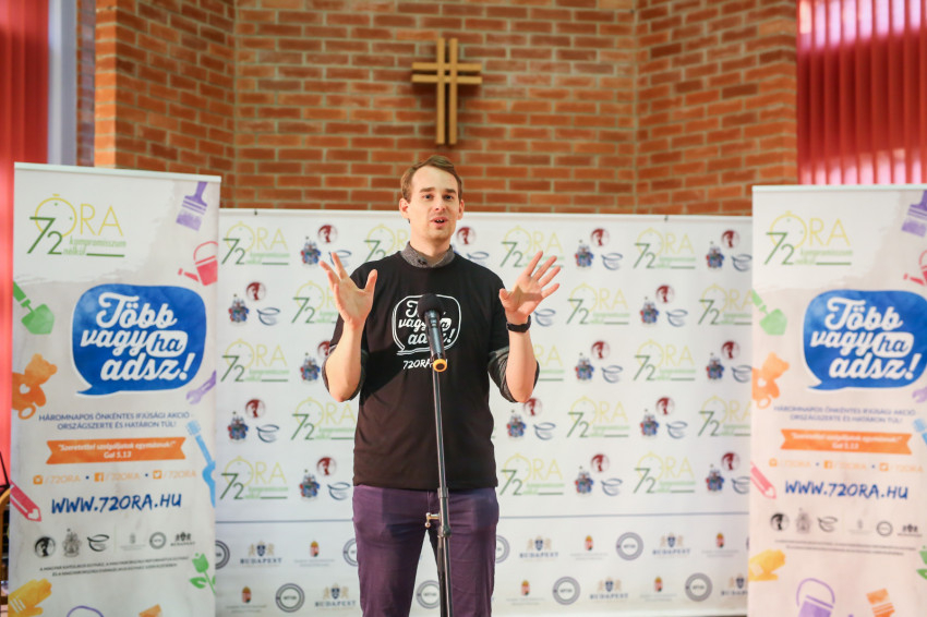 A megnyitó rendezvényen Darvas Márton, a „72 óra” főkoordinátora köszöntötte a fiatalokat. Az, hogy a hangulat derűs volt és vidám, természetesnek mondható, Darvas Mártonban pedig van egy vele született adottság, hogy pillanatok alatt képes közvetlen kapcsolatot teremteni mindenkivel.