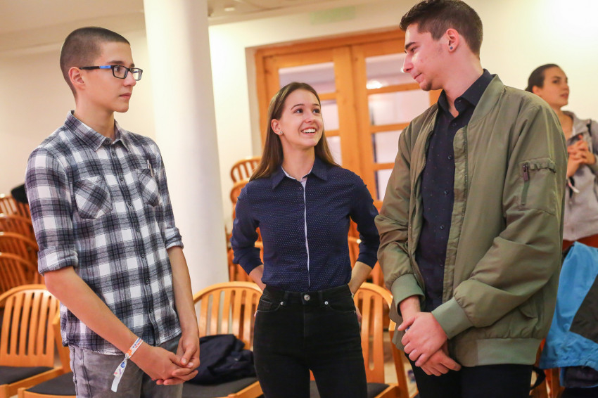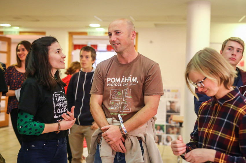 Laci egy budapesti gimnáziumból érkezett. Elmeséli, hogy náluk családi hagyomány az önkénteskedés, a szülei és a testvérei is gyakorolják, testvérei már több ilyen akcióban részt vettek. Természetes volt számára, hogy jelentkezik. A hangulat nagyon jó, és mellette még valami hasznosat, jót is tesznek. Egyelőre csak annyit tud, hogy a csapatával egy angyalföldi templom festésében fognak segédkezni.