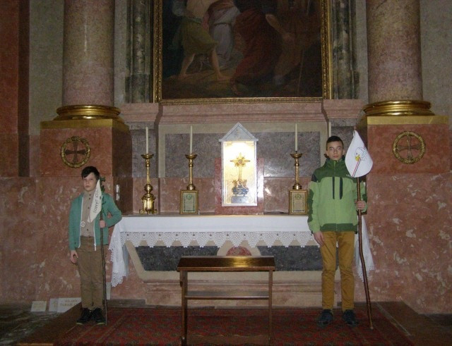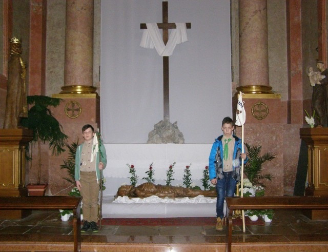 Így nagyszombaton délelőtt a kis- és nagycserkészek egymást váltva álltak őrt őrsi zászlóikkal a szentsír mellett. Mivel létszámban és lelkesedésben nem volt hiány, idén a Szent Kereszt-ereklye melletti őrséggel is kiegészült a szolgálatuk.