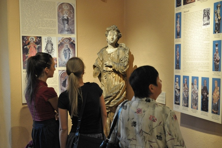 Külön termet szenteltek a kiállítás kurátorai az erdélyi Mária-tisztelet, a Mária-év, és egyúttal a kiállítás központi figurájának, a Csíksomlyói Madonnának. Tárlókban láthatóak a kegyszobor öltöztetéséhez használt, fennmaradt koronák és egyéb kellékek, a kolostor történetét is feldolgozó rendtörténeti írások, de itt látható a Madonna néhány, művészettörténeti forrásként is jelentős, az egykori barokk főoltár elrendezését is mutató, 18–19. századi festett, illetve metszett ábrázolása is.