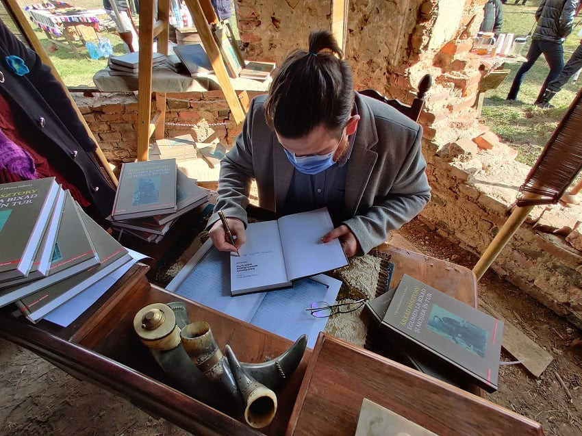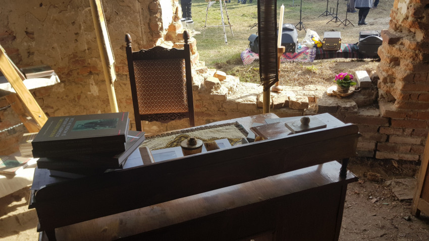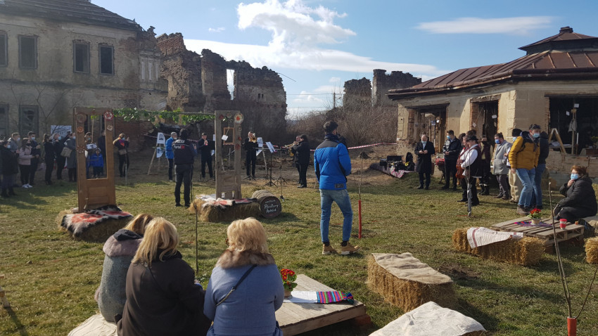 A Szatmár Megyei Múzeum által szervezett rendhagyó könyvbemutatót az omladozó kastély közelében rendezték meg. A Szatmárnémeti Dinu Lipatti Állami Filharmónia rézfúvós kvartettje századvégi hangulatot teremtett, majd Răzvan Roșu, Marin Grigorean és Vasile Zele zenéje is kiválóan beleilleszkedett az egykoron hatalmas birtok megmaradt épületegyüttesének légkörébe.