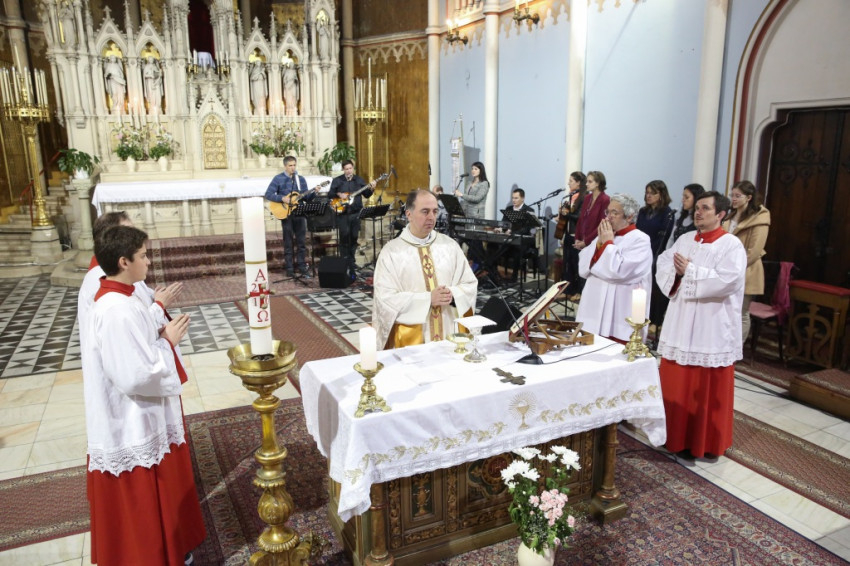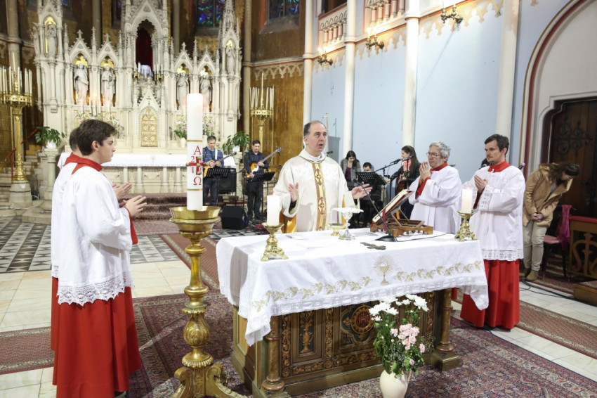 Szeidel Péter azokról a családokról beszélt a misén – először bevezetőjében, majd a prédikációban –, akiket Isten megpróbál, vagy más megfogalmazásban megengedi az életükben a megpróbáltatást. Aztán arra hívta fel a figyelmet, hogy ez a nap egyben anyák napja, Mária hónapjának első napja és a kommunikáció világnapja is. Isten, a fő kommunikátor azt a feladatot adja nekünk, hogy szeretetét közvetítsük, hogy az ő nevében kommunikáljunk, és így segítségükre legyünk azoknak, akik mélyen vannak: meg nem értettek, kitaszítottak vagy betegek. Mindannyiunkat együtt érző jelenlétre, érintésre, bátorításra szólít fel. Vigasztalását egyháza, közösségei által, vagyis általunk akarja adni a világnak” – hangsúlyozta.