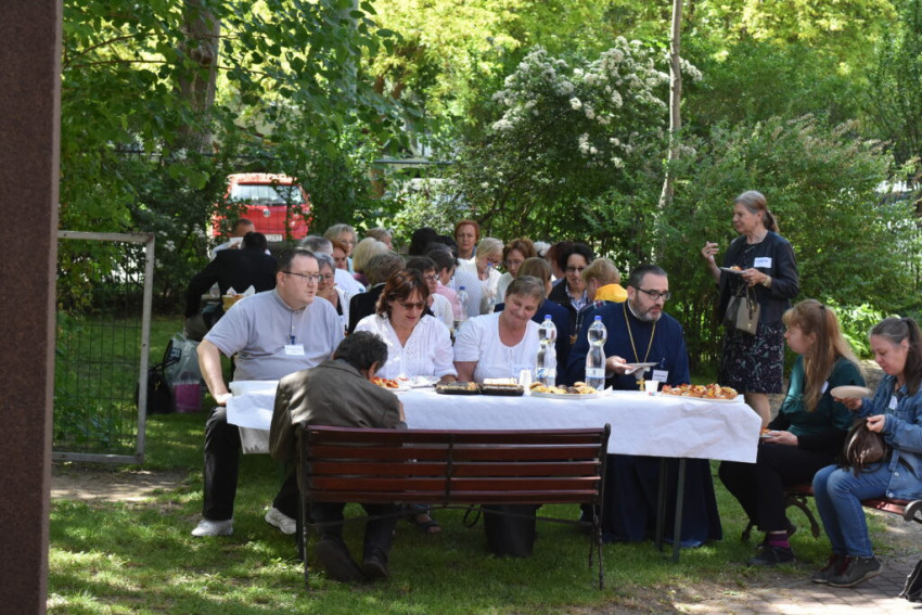 Az előadásokat agapé követte a templom udvarán, jó hangulatú beszélgetéseknek adva lehetőséget.