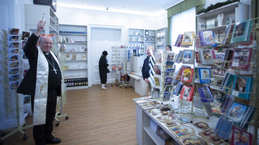 A szentmise után házszentelést tartottak a kateketikai központban és az épületben lévő kegytárgy- és könyvesboltban.