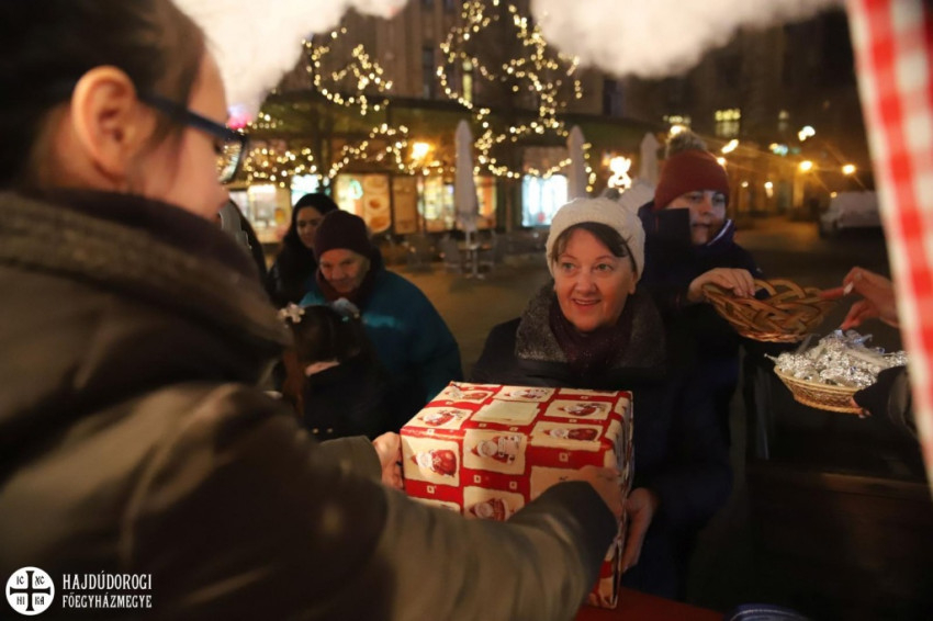 A hagyományokhoz híven ismét a Hajdúdorogi Főegyházmegye Szent Miklós Görögkatolikus Diákotthonának lakói vállalták a legtöbb önkéntes órát a debreceni főtéren felállított „Add tovább!”-házikóban.