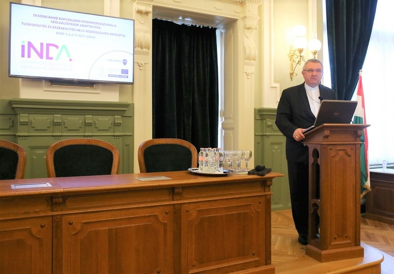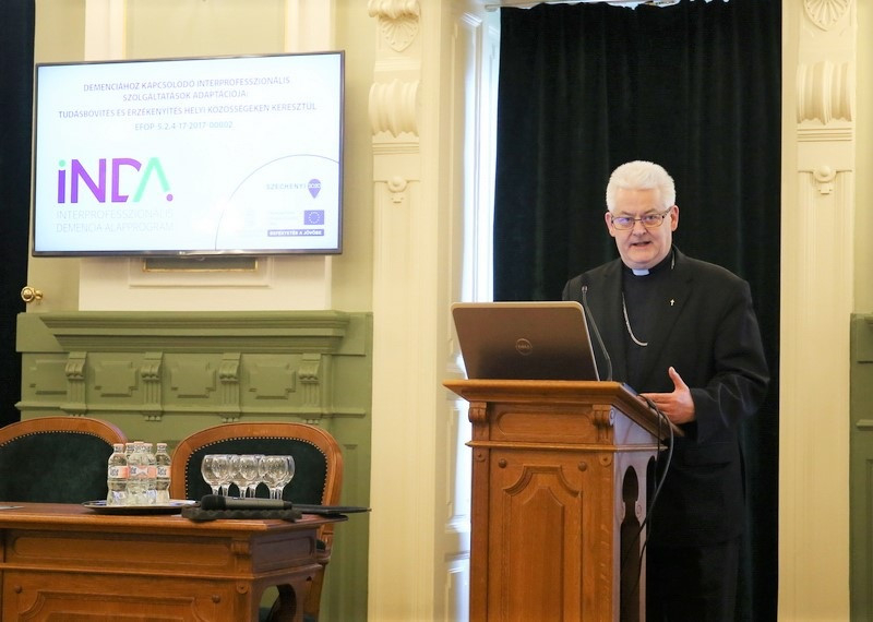 Ha megpróbáljuk együtt, közösen felfedezni azokat az embereket, akiknek szükségük van a segítségre, és erről tudjuk egymást tájékoztatni, sokat tettünk. Ha szeretettel erősítjük egymást, és szaktudással, akkor a folyamat, amely könyörtelenül halad előre, talán mégis lelassítható. Szívből kívánom, hogy ami ma ezzel a konferenciával elindul, hozzon eredményt, nyissa meg a szívünket, és tegyen érzékennyé bennünket mindazon embertársaink iránt, akik hordozzák ezt a keresztet. Segítsen még erősebb együttműködéshez az összefogás, sikerüljön így több irányból átkarolni a demenciával szembesülő családokat, és elvezetni őket egymáshoz – zárta beszédét Spányi Antal.