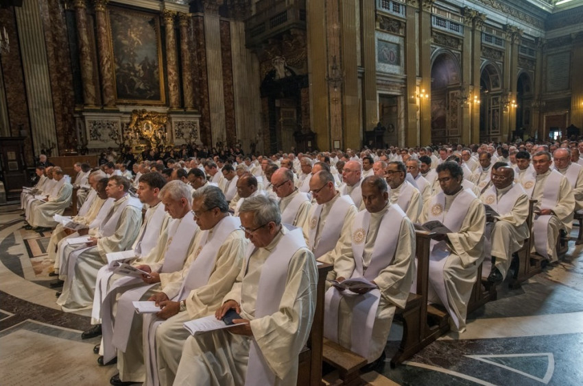 Október 3-án 215-en gyűltek össze a jezsuiták római központjának aulájában, ahol megkezdődött az általános rendi gyűlés plenáris szakaszának első ülése, amelyen a rendfőnök a szokásoknak megfelelően benyújtotta lemondását.