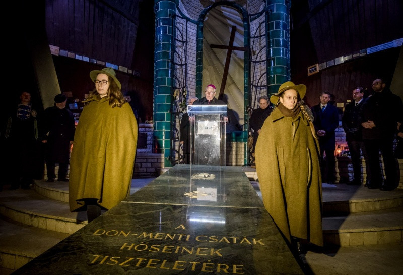 „Lehajtott fejjel és összeszoruló szívvel emlékezünk minden magyar katonára és munkaszolgálatosra, halottainkra és az eltűntekre, a pergőtűzben megsebesültekre, a távoli hómezőkön megfagyottakra és a nagyon kevés hazatérőre.