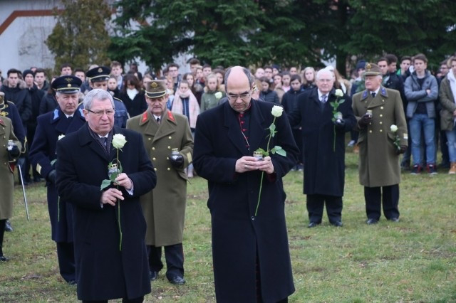 Az elesett honvédek és a túlélők előtti tisztelet jeleként Puskás Tivadar polgármester és Székely János megyéspüspök helyezett el virágot és mécsest az emlékműnél.